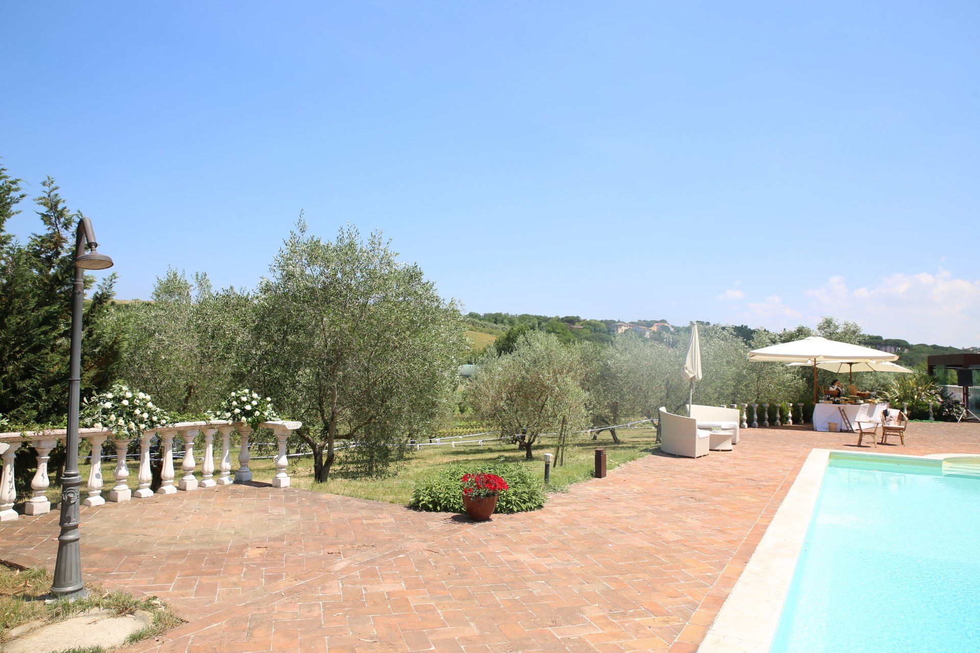 Durante la bella stagione, è possibile utilizzare tutta l’area esterna: tre ettari di terreno coltivato a olivi, a cui si aggiunge un meraviglioso giardino con tanto di piscina e vasca idromassaggio.